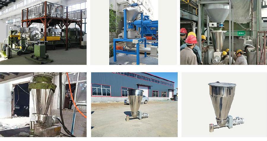 生产时,原料在阀的控制下通过软连接进入到计量料仓,由驱动马达提供了驱动带动同步带传送部件,并且通过喂料模块进行原料输出,称重单元对整个计量料仓进行称重,通过测量计量料仓内原料减少的重量来计算出喂料速率,并根据客户的产量要求调整产量和喂料速率。多工位的设备则在下端设计有一个同步混合装置进行多种原料计量后的混合。